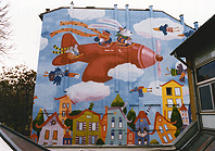 Újabb színes, Matáv által festetett tûzfallal gazdagodott a fôváros. A Széna téri és Márvány utcaiak után ezúttal jótékony céllal, ugyanis a tûzfal, amelyet befestettek, a SOTE Gyermekklinikájából látható. Mint azt képünk is mutatja, a klinikán gyógyulásra váró beteg gyermekek életébe visz egy kis színt ez a falfestmény.